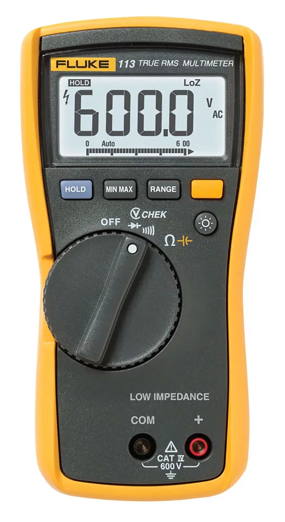 This meter gives you the means to easily and quickly do basic meter set and reconnect testing. It's simple to use and has the features needed to repair most electrical problems. The Fluke 113 has significant improvements over other digital multimeters available on the market, including Fluke model 7-600.Using the Fluke VCHEK™ LoZ low impedance measurement function, you can simultaneously test for voltage or continuity. LoZ low impedance measurements also block ghost voltages induced by nearby conductors. *Be advised that LoZ low impedance measurements present a low load to a circuit protected by an RCD, which can cause the RCD to trip. The Min/Max function lets you record signal fluctuations. The Fluke 113 can perform diode tests and provides both auto and manual ranging capabilities. With features such as conformance to the latest safety standards, backlight, and a much larger display that’s easier to view, this meter is a must have for every toolbox.