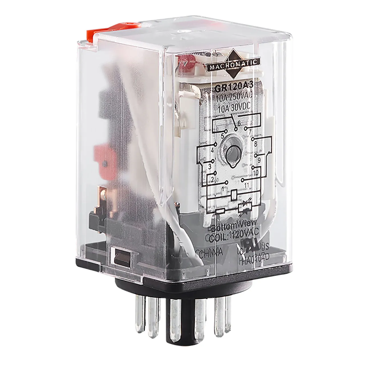 General Purpose Round Style Relay,120VAC,3P,3PDT