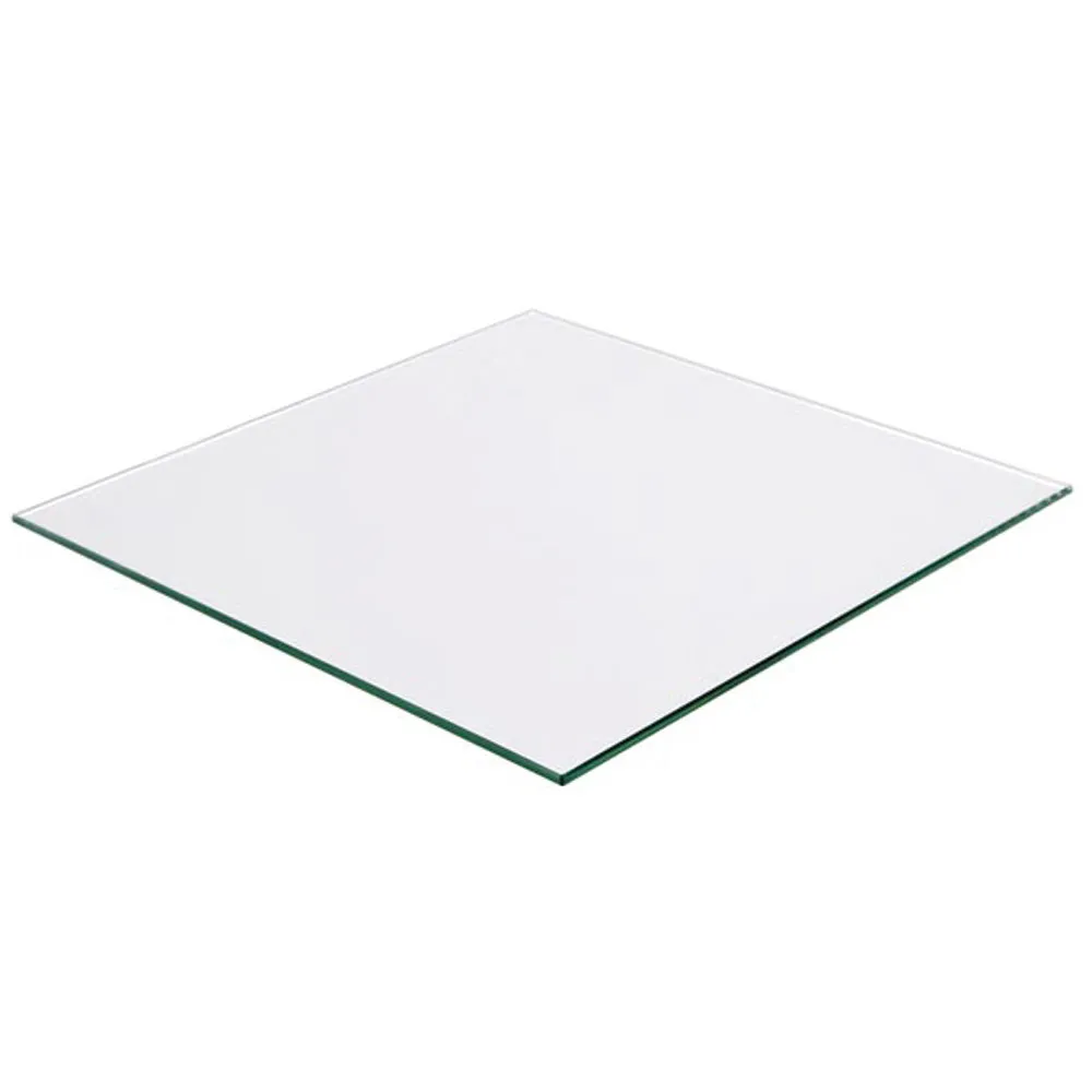 Material: clear tempered glass Thickness: 0.12" Size: 8.46" x 8.46" (215 mm X 215 mm)