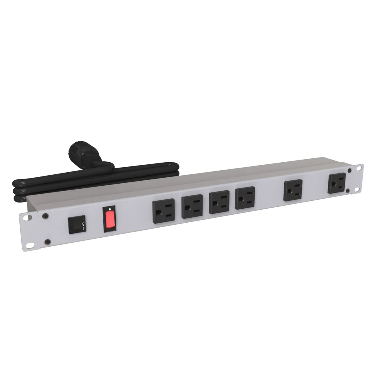 Gray 19" Rack Mount, 6 Receptacles on Front On/Off Rocker Switch 6' NEMA L5-15P Plug