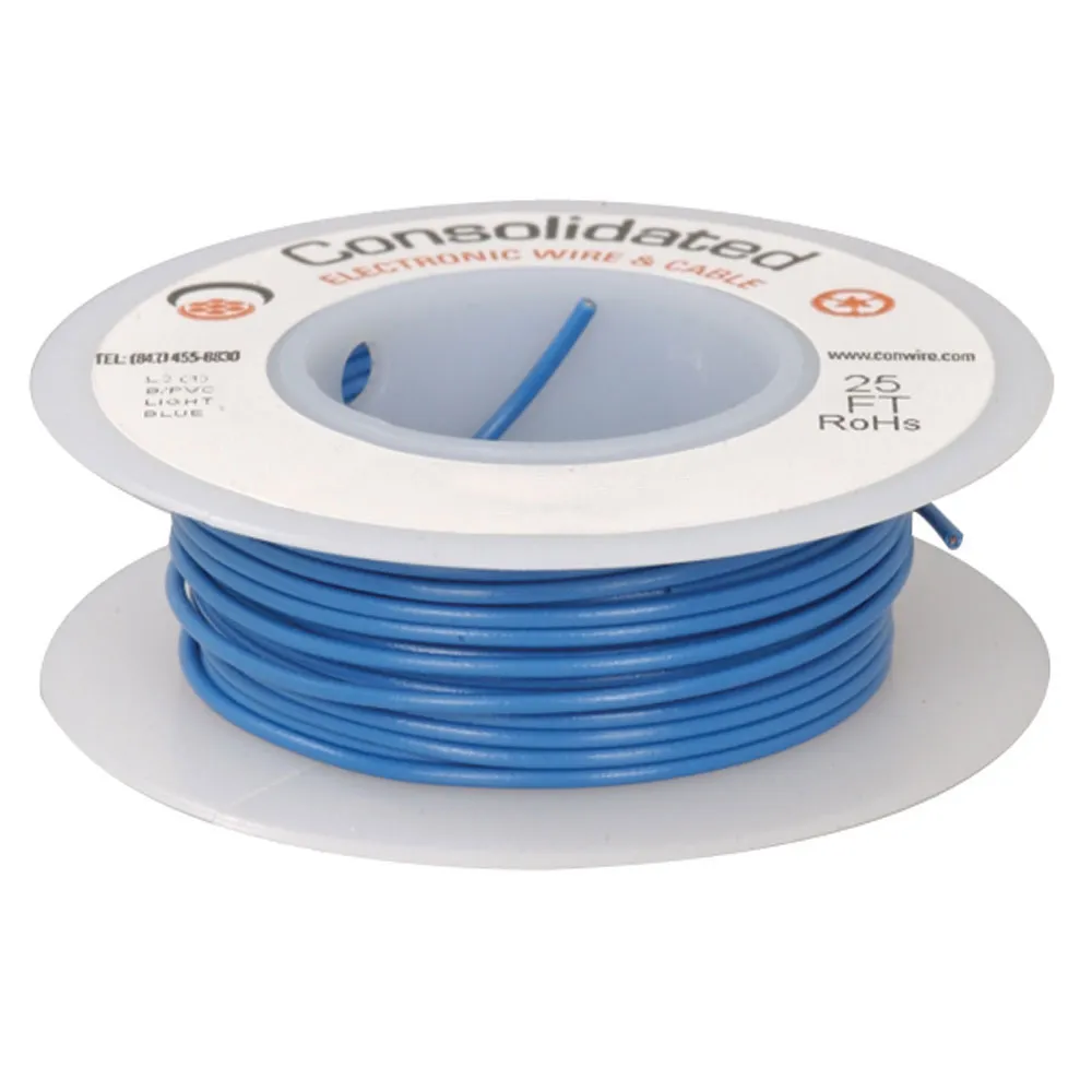 Hookup Wire 18AWG Solid Tinned Copper Blue 0.072 Inch Nominal Outside Diameter PVC Insulation 25 Foot Roll