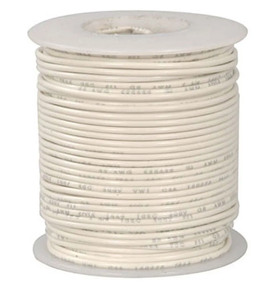 Hookup Wire 18AWG Solid Tinned Copper White 0.072 Inch Nominal Outside Diameter PVC Insulation 100 Foot Roll