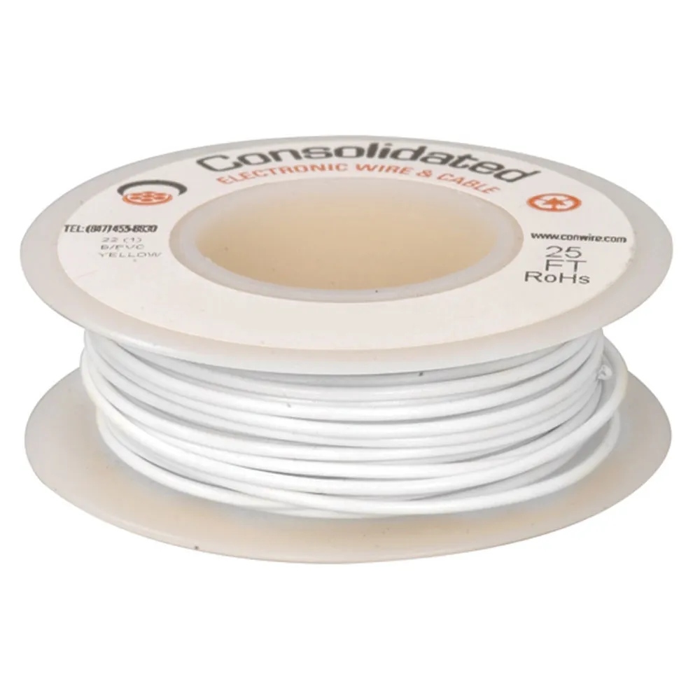 Hookup Wire 18AWG Solid Tinned Copper White 0.072 Inch Nominal Outside Diameter PVC Insulation 25 Foot Roll
