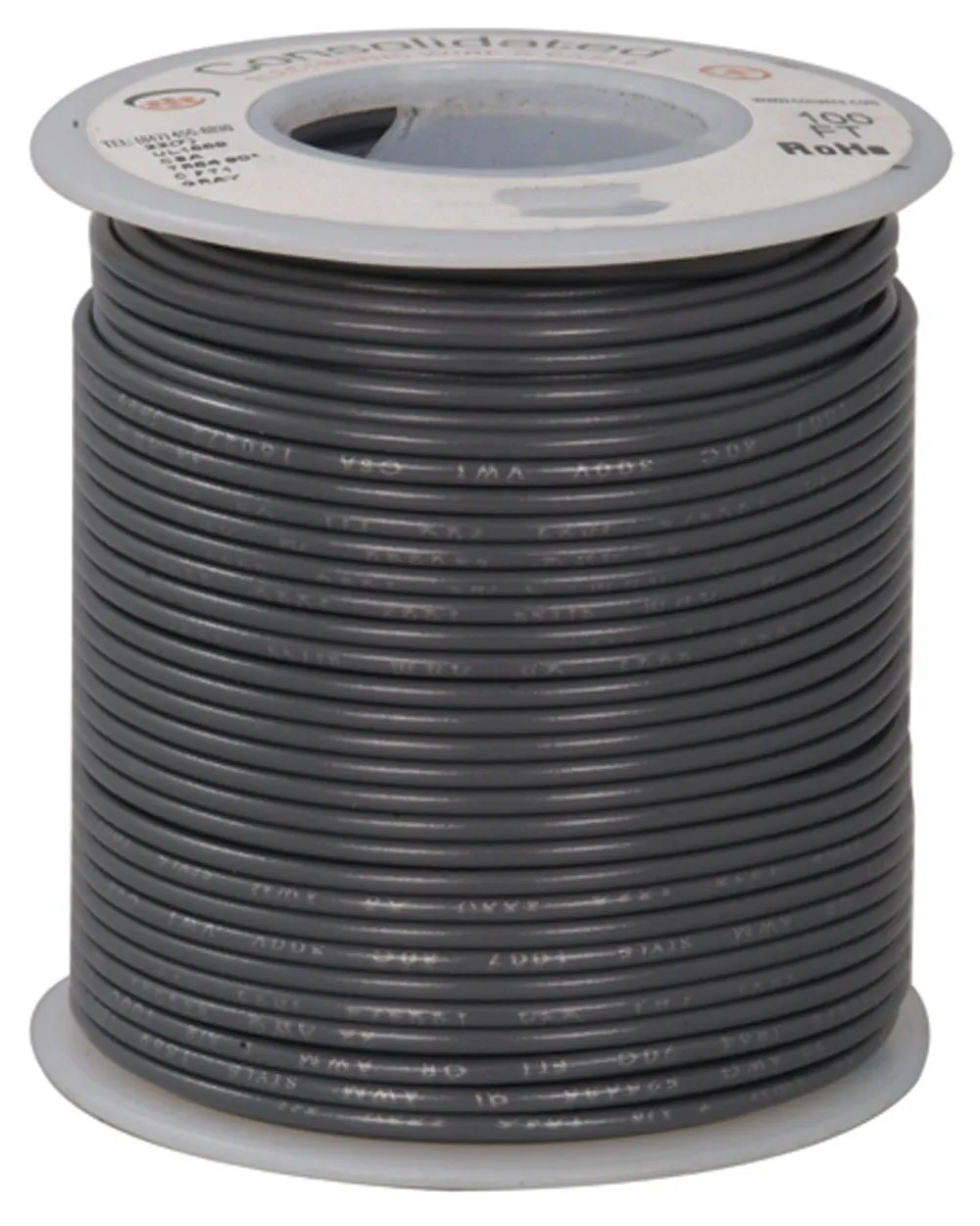 Hookup Wire 24AWG Solid Tinned Copper Gray 0.052 Inch Nominal Outside Diameter PVC Insulation 100 Foot Roll