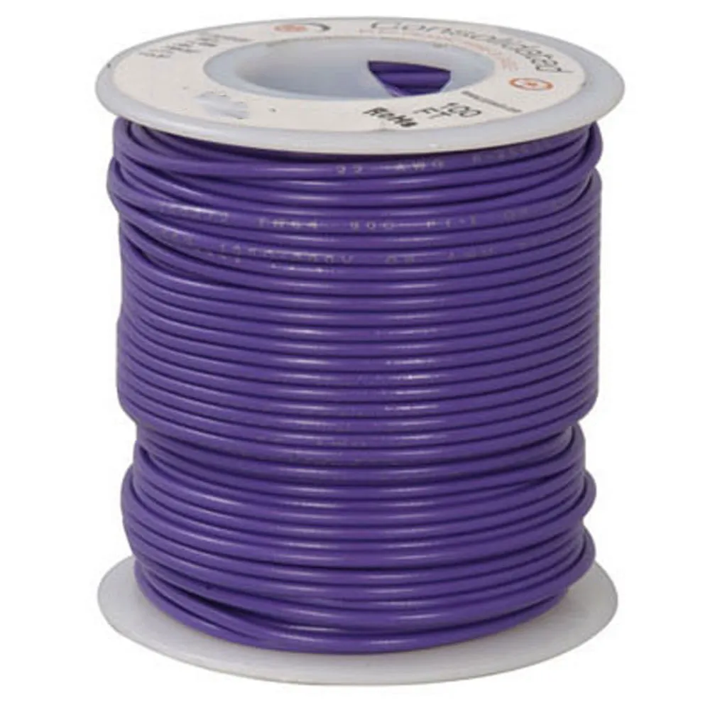 Hookup Wire 24AWG Solid Tinned Copper Violet 0.052 Inch Nominal Outside Diameter PVC Insulation 100 Foot Roll
