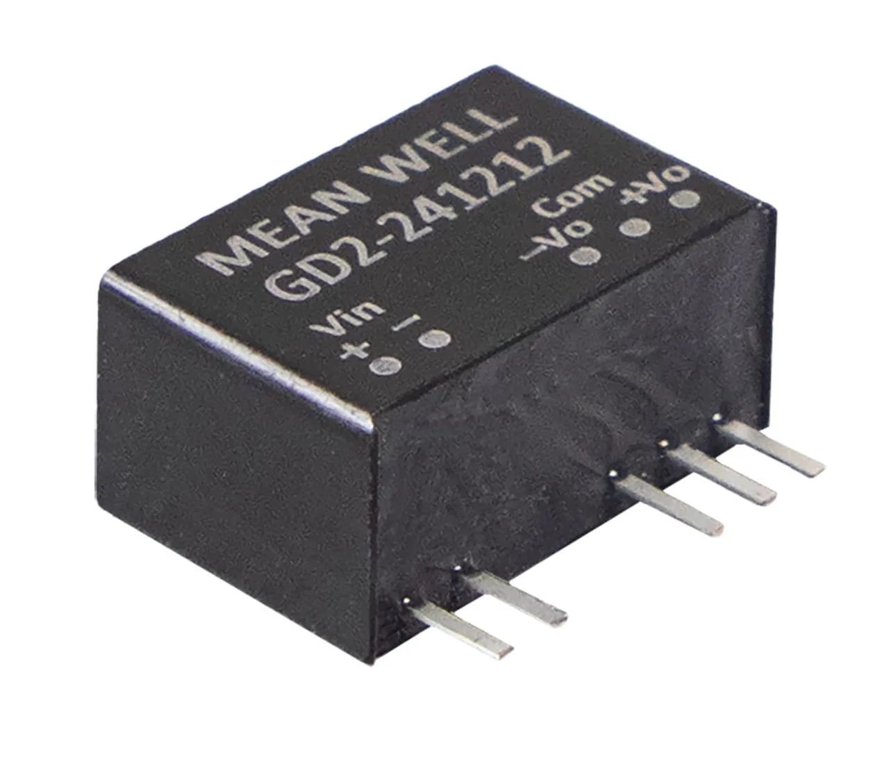 GD2 series is a 2W isolated and unregulated module type DC-DC converter with SIP7 package. It feature international standard pins, a high efficiency up to 82%, wide working temperature range of -40C to +90C, 6200VDC or 4300VAC I/P-O/P high isolation voltage, short circuit protection, and more. The models account for different input voltage 12V/15V/24V ±10%, and a variety of different output positive and negative voltages, which are suitable for ultra low leakage current, and applications like industrial control, telecommunication field, motor drivers and solar inverters, distributed power architecture, and so on.