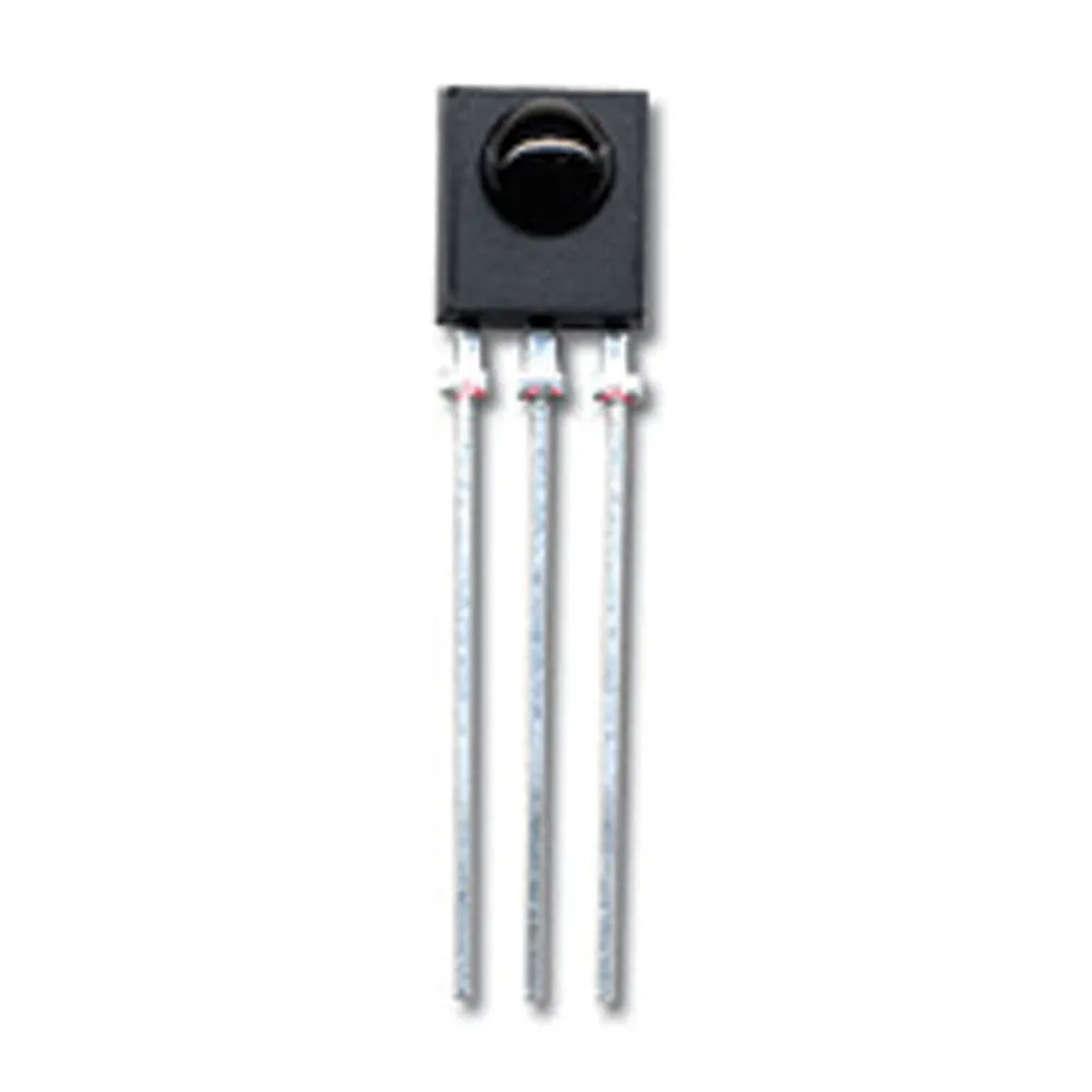 Infrared receiver with 38 kHz carrier frequency, for use with Parallax IR Transmitter Assembly Kit and more. These products are miniaturized receivers for infrared remote control systems. A PIN diode and a preamplifier are assembled on a lead frame, the epoxy package acts as an IR filter. This infrared receiver is a compatible replacement for the one found in the Boe-Bot and Sumo-Bot Robot Kits. We recommend purchasing replacements in pairs, since models supplied in kits may vary.Features