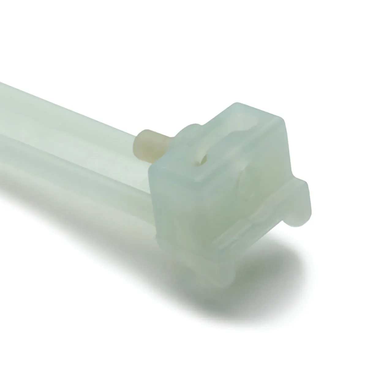 The patented Kabelrap cable tie design offers a smooth strap which is locked into place with a glass fiber reinforced pin. The curved head design provides full circumferential compression around the bundle or harness. Once applied with the required KR6/8 manual tool, the tie offers a secure and vibration resistant assembly.