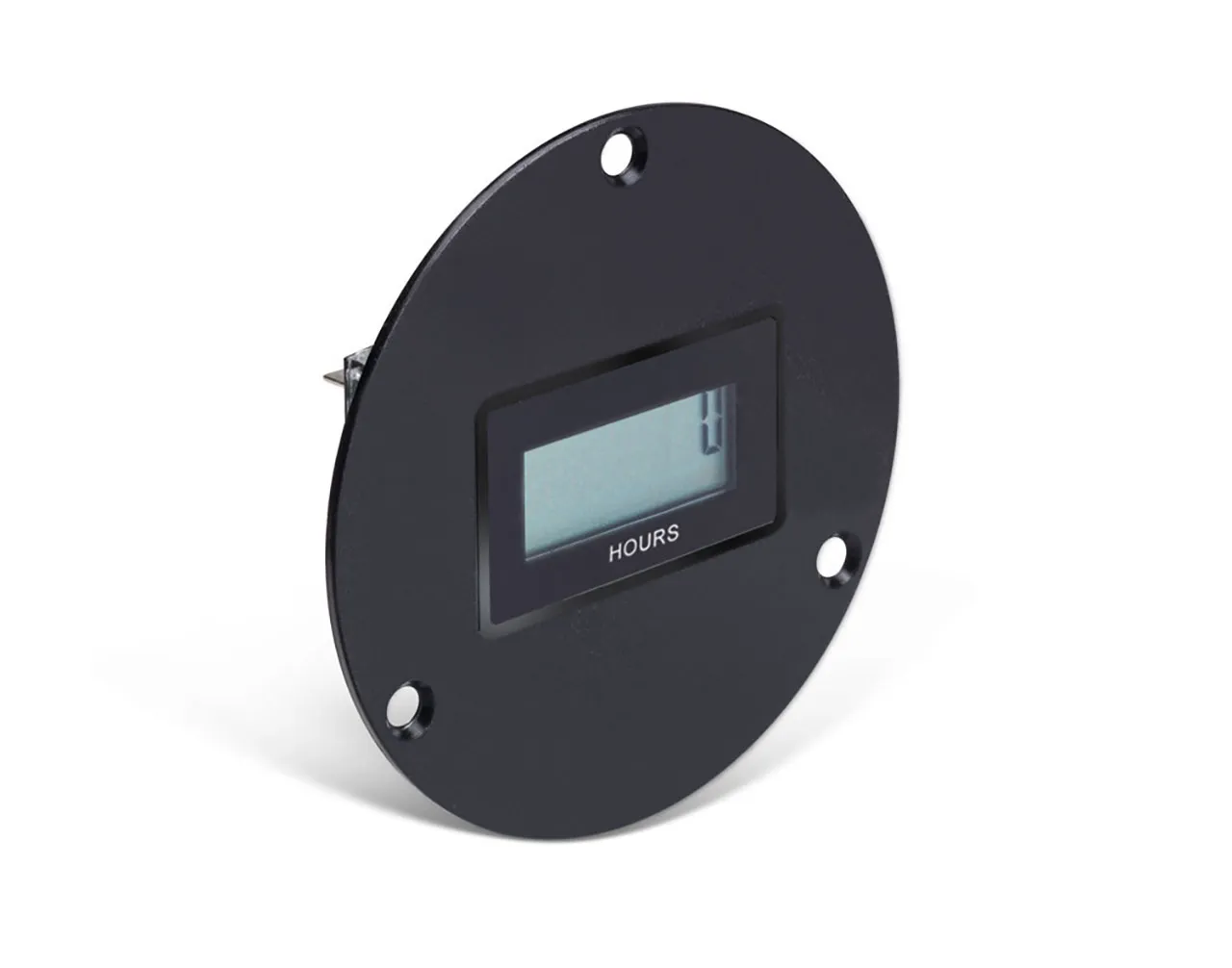 LCD Hour Meter, 10-300 VDC and 20-300 VAC In One Unit, 3-Hole Round Housing, 1/4" Spade Terminals, Remote Reset