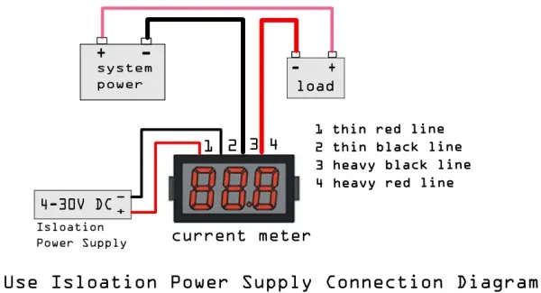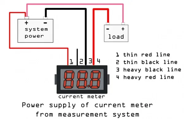 This is a standard LED Current Meter 10A. It measures 0-9.99A with 2% accuracy. Most suitable for current display in the circuit. Just apply four wires without any extra circuit or components, it gives the reading straight away. Easy to use, and good company with robot application.It has three color to select, green/blue/red.Warnings: Please carefully follow the instructions for wiring. The power supply terminal and measurement terminal of this LED Current Meter are used common-ground connection. So, the measurement terminal of current meter must be cascaded after loads. It's better that power supply of the current meter is isolated.