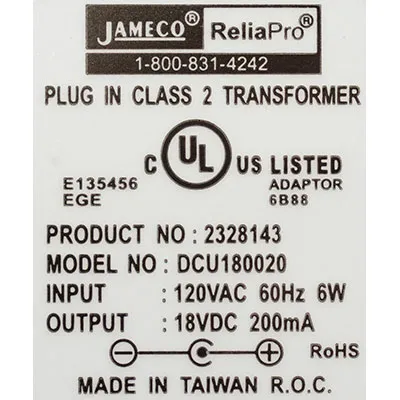 Linear Wall Adapter 18 Volt 200 mA 3.6 Watt 2.1mm Plug Center Positive