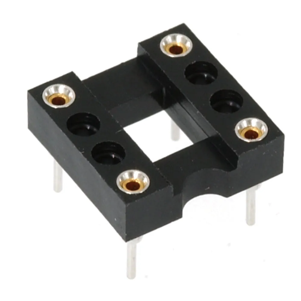 - Funnel shaped four-fingered contacts provide easy IC insertion and extraction.
