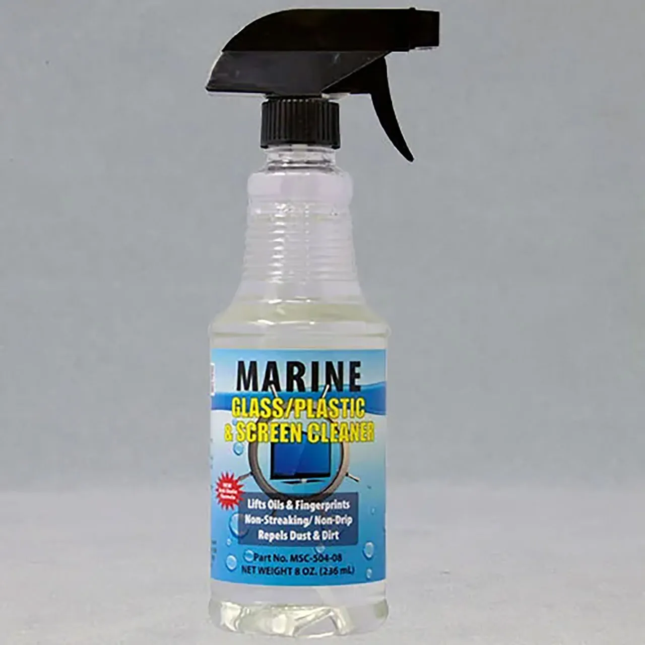 Specially formulated for Marine "Glass" applications including Isinglass, Vinyl and/or plastics. Also works on any onboard screens, displays or monitors, including touch screens.