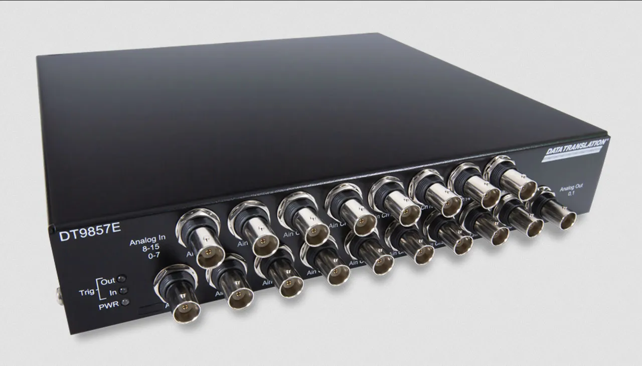 Digilent is now a proud distributor of Measurement Computing Corporation (MCC) DAQ and data logging products. MCC is a leading supplier of data acquisition solutions that are easy-to-use, easy-to-integrate, and easy-to-support.The DT9857E-16-xAO is a USB-based, high-speed dynamic signal analyzers with 16 simultaneous 24-bit IEPE sensor inputs, up to 105.4 kS/s/ch sample rate, one tachometer input, and 16 digital I/O. It features built-in IEPE signal conditioning for direct measurements from sensors like accelerometers and microphones.