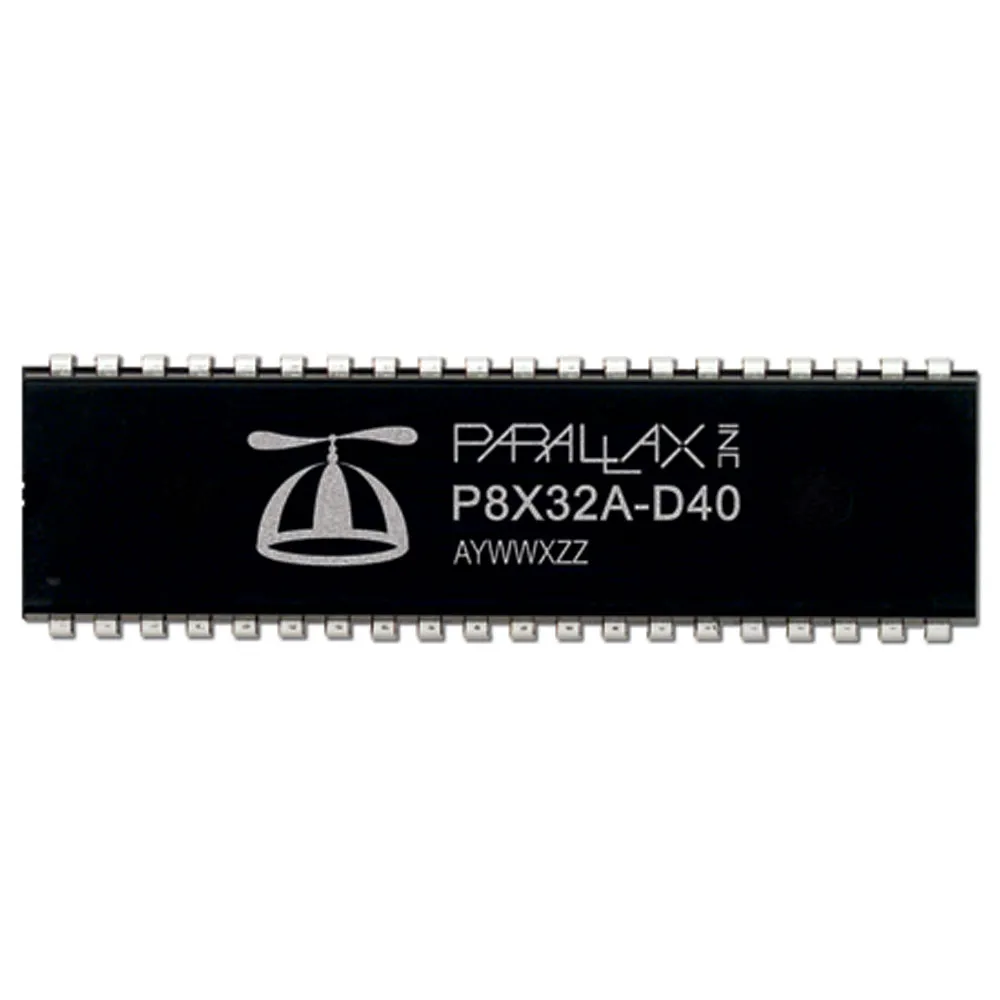 Introducing Parallax's own all-custom silicon, designed at the transistor level by schematic! The Propeller module is a multi-processing chip, with shared memory and a built-in interpreter for programming in a high-level object-oriented language, called Spin™, and low-level (assembly) language. With the set of pre-built Parallax "objects" for video, mice, keyboards, NTSC/VGA displays, LCDs, stepper motors and sensors your application is a matter of high-level integration with Propeller chips. The Propeller chips are designed for high-speed embedded processing, while maintaining low power, low current consumption and a small physical footprint.The P8X32A-D40 is most useful for prototyping in its 40-pin DIP package. Connecting the Propeller module to your computer's serial or USB port using our Prop Plug for programming is quite simple. The Propeller chip can run on its own with a power supply, internal clock and using RAM for code storage. Add an external EEPROM for non-volatile code storage.