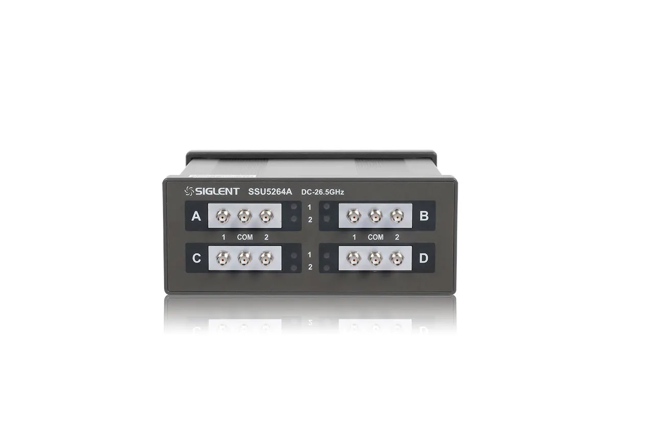 To meet the multi-port test requirements of microwave and millimeter wave systems, SIGLENT has introduced the SSU5000A series mechanical switches with frequency range up to 50 GHz. The SSU5000A has compact design, excellent RF characteristics, low insertion loss, great impedance matching and extraordinarily short switching time. It contains one to four independent single-pole double-throw mechanical switches with SMA or 2.4 mm connectors, or single-pole six-throw mechanical switches.