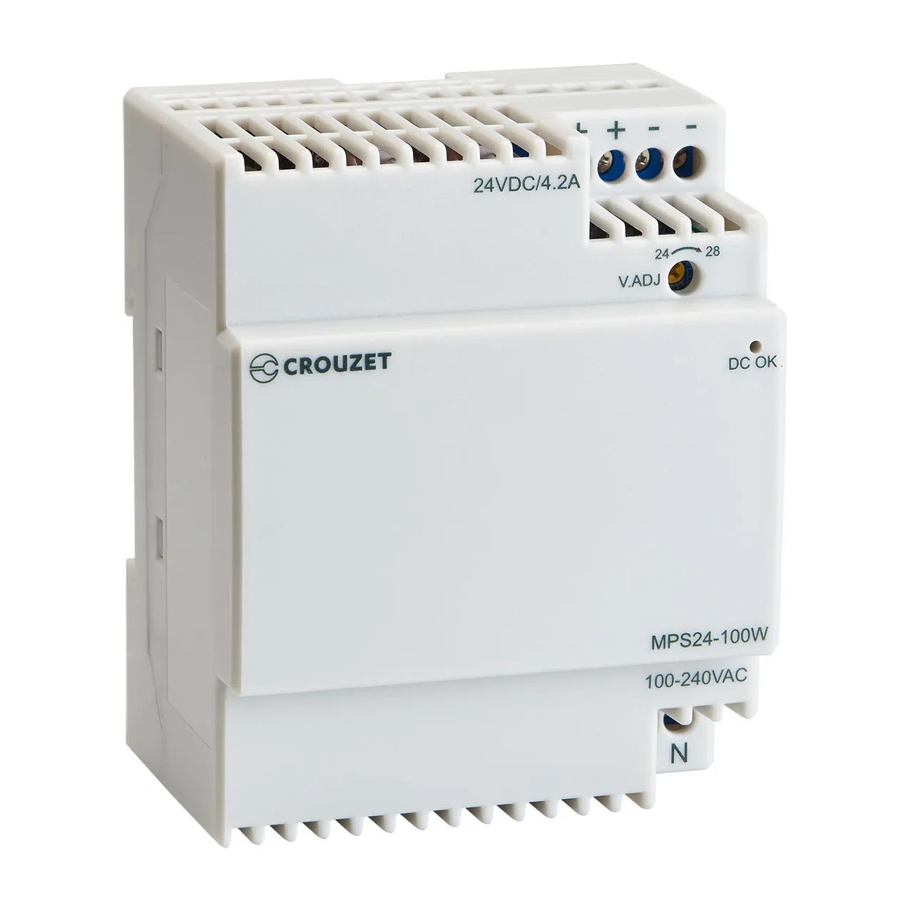 ModuTwo Long Rear Locating Pins Power Supply 100W 100-240 VAC/24 VDC 4.2A DIN Rail Mount.