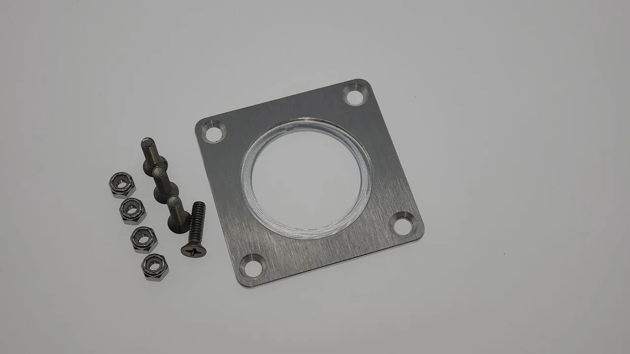 - Machined so connector fits perfectly within the plate with its gasket and locking ring from behind.