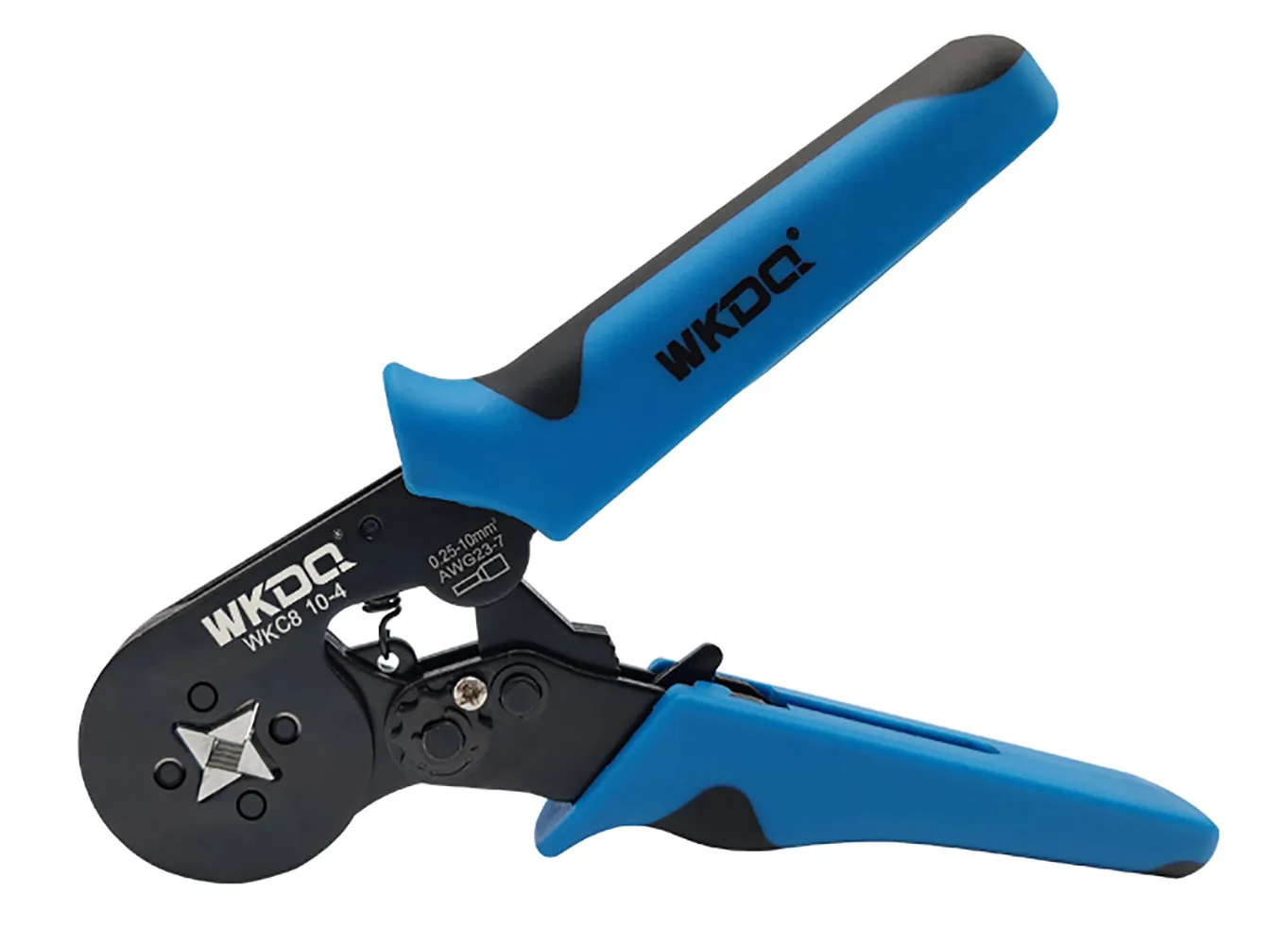 Professional crimping tools for pre-insulated VE type cord end terminal connectors. To use this crimping tool, each wire is first placed into the connector. Then the connector with wires is placed into the crimping tool, and the handles are squeezed together.Features