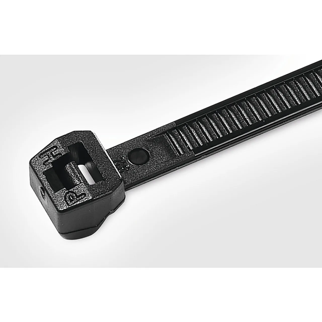 Outside Serrated Cable Tie, 8" Long, 30lb Tensile Strength, PA66HS, Black, 100 per Package