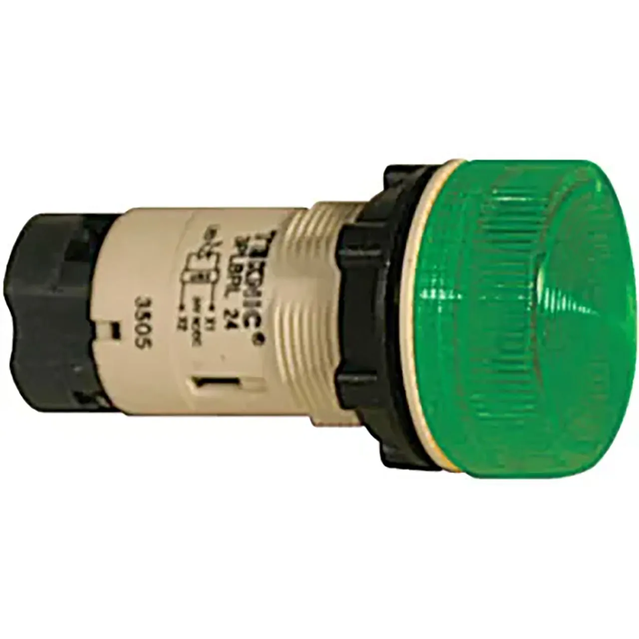Panel Mount Indicator Pilot Light 22mm Integral LED Green Lens/Green LED 24VAC/DC 3PBL Series.