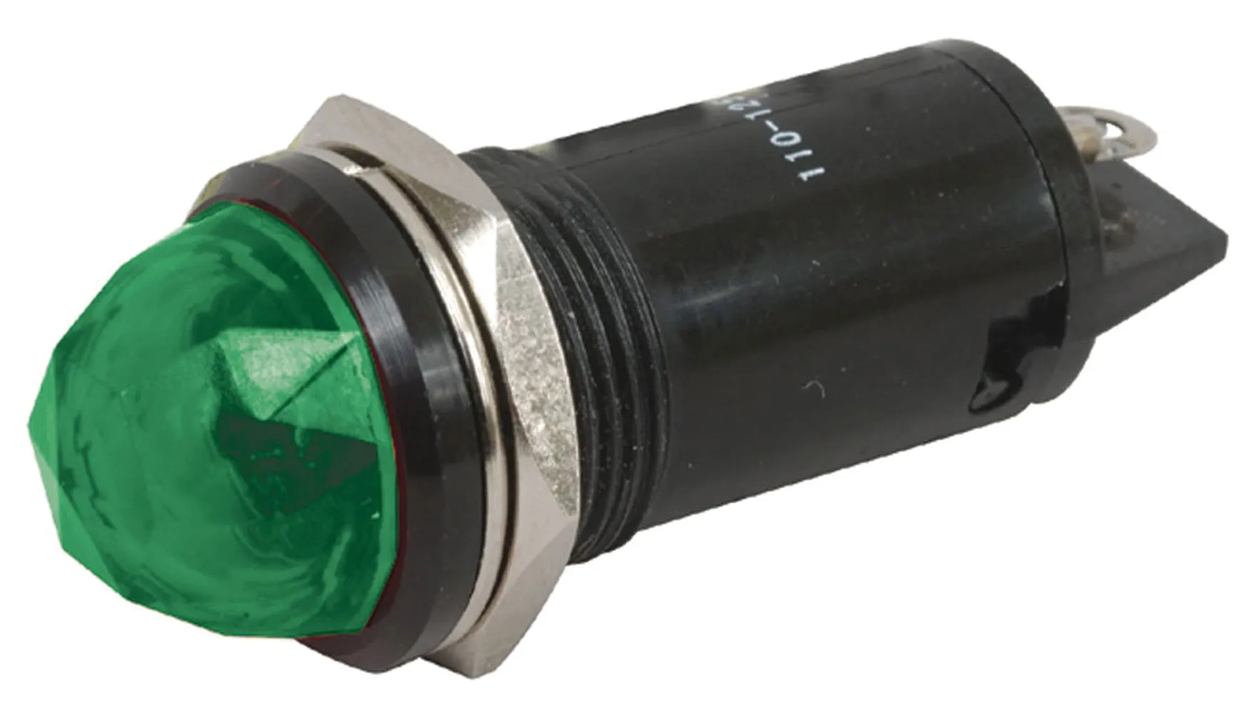 Panel Mount Neon Lamp Green 120VAC 16mm Mtg. Hole Solder Terminals with Lamp