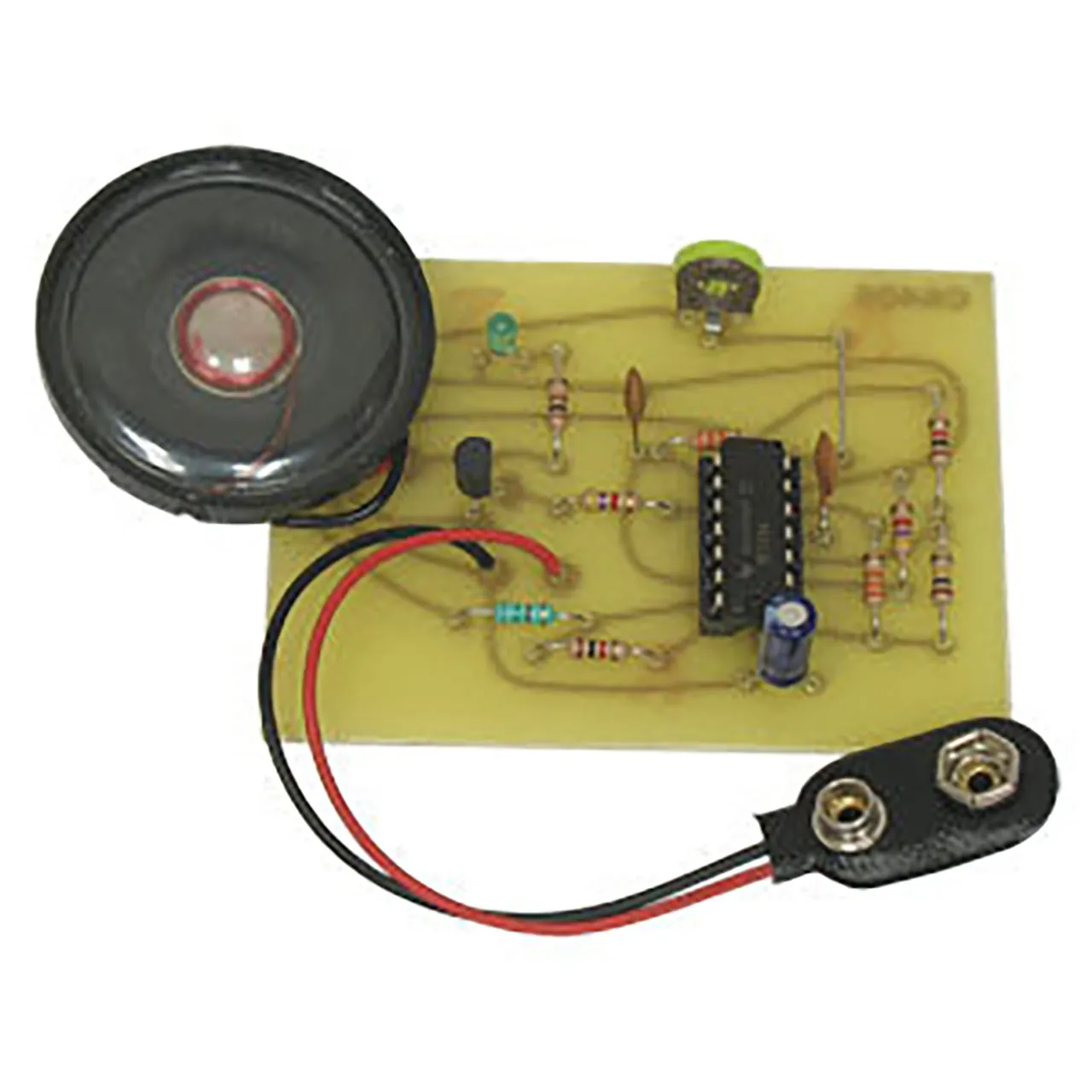 This kit produces the sound and light you've seen in the futuristic weapons used in many space movies! Phasor Kit features a control to vary the frequency of the sound. Great for attention getter, science projects or use your imagination and place our kit in models, robots, phasor guns, etc. Operates on one 9V battery (not included).Size of board: 2-3/4" x 2". Complete with all parts, PC board and instructions. Skill Level 1.