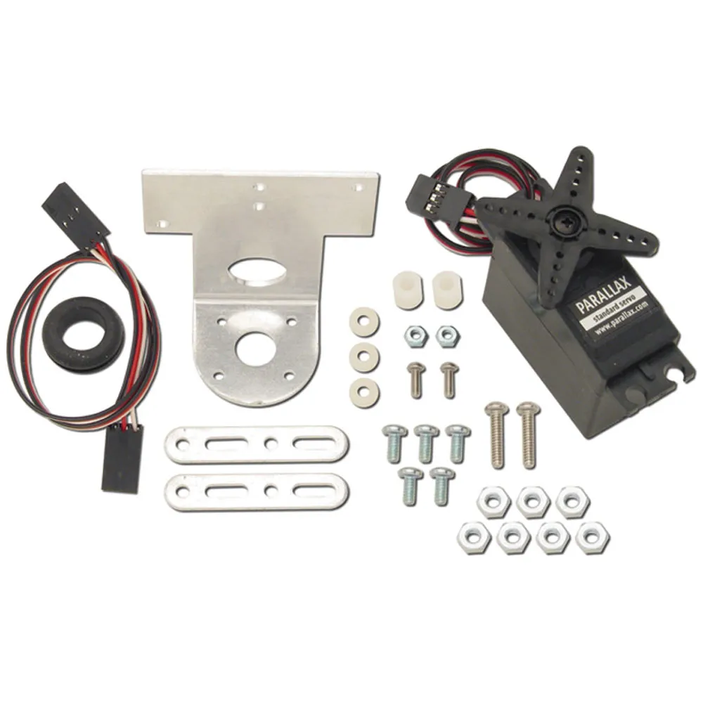 Allow your Boe-Bot (or any robot) to make a 180° sweep of its environment to locate and determine the location and distance to obstacles with the PING))) Ultrasonic Distance Sensor (sold separately). It's perfect for autonomous navigation, or to zero in on a specific object. It includes a Parallax Standard Servo, aluminum brackets and complete mounting hardware.Features:
