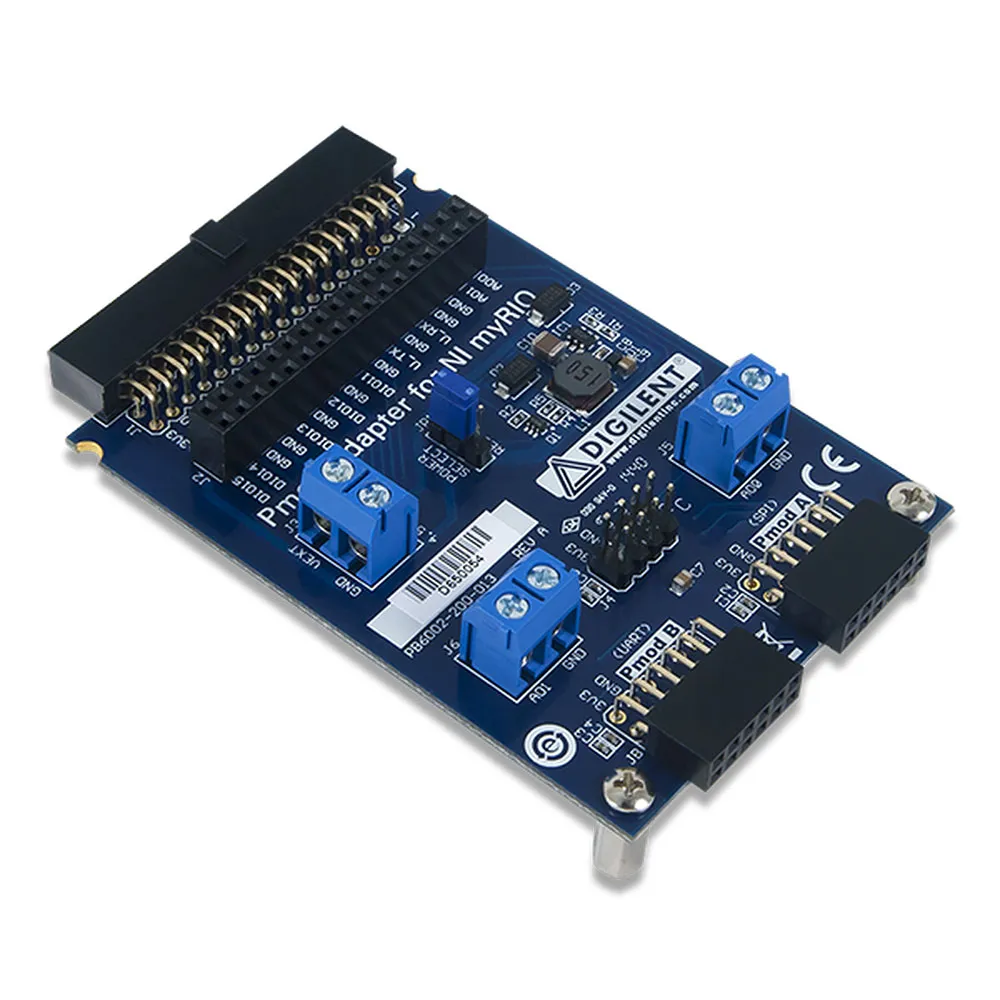 With the Pmod Adapter for myRIO, you can now connect your myRIO to the expansive selection of Pmods offered by Digilent. Users can increase the functionality of their LabVIEW projects by easily accessing the SPI, I2C, and UART connections that are used by Pmods. It's also an ideal choice for robotic applications that require additional functionalities. The easy-to-use ports also make this product essential for students who are just learning about the different interfacing protocols and how to code them in LabVIEW.Features