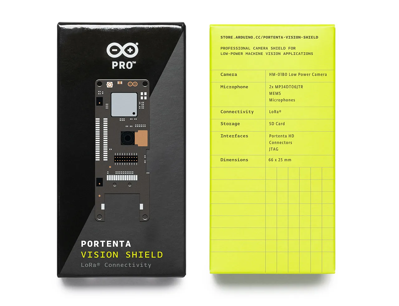 The Arduino Vision Shield is an active add-on to the Portenta family of boards.- Camera: Himax HM-01B0 camera module (manufacturer site)