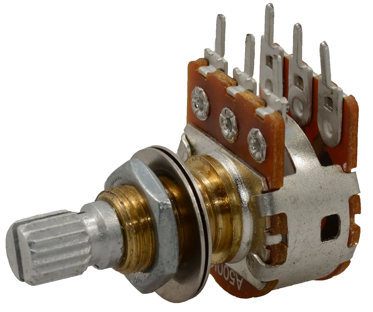 Potentiometer 500K Ohm 5% 60mW 2 Gang Audio Taper Carbon Knurled Slotted Shaft