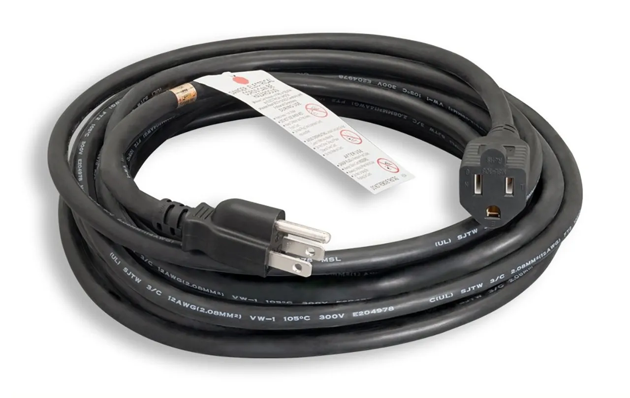 POWER CORD,12/3,NEMA 5-15P/R,SJTW,OUTDOOR,BLACK,100FT