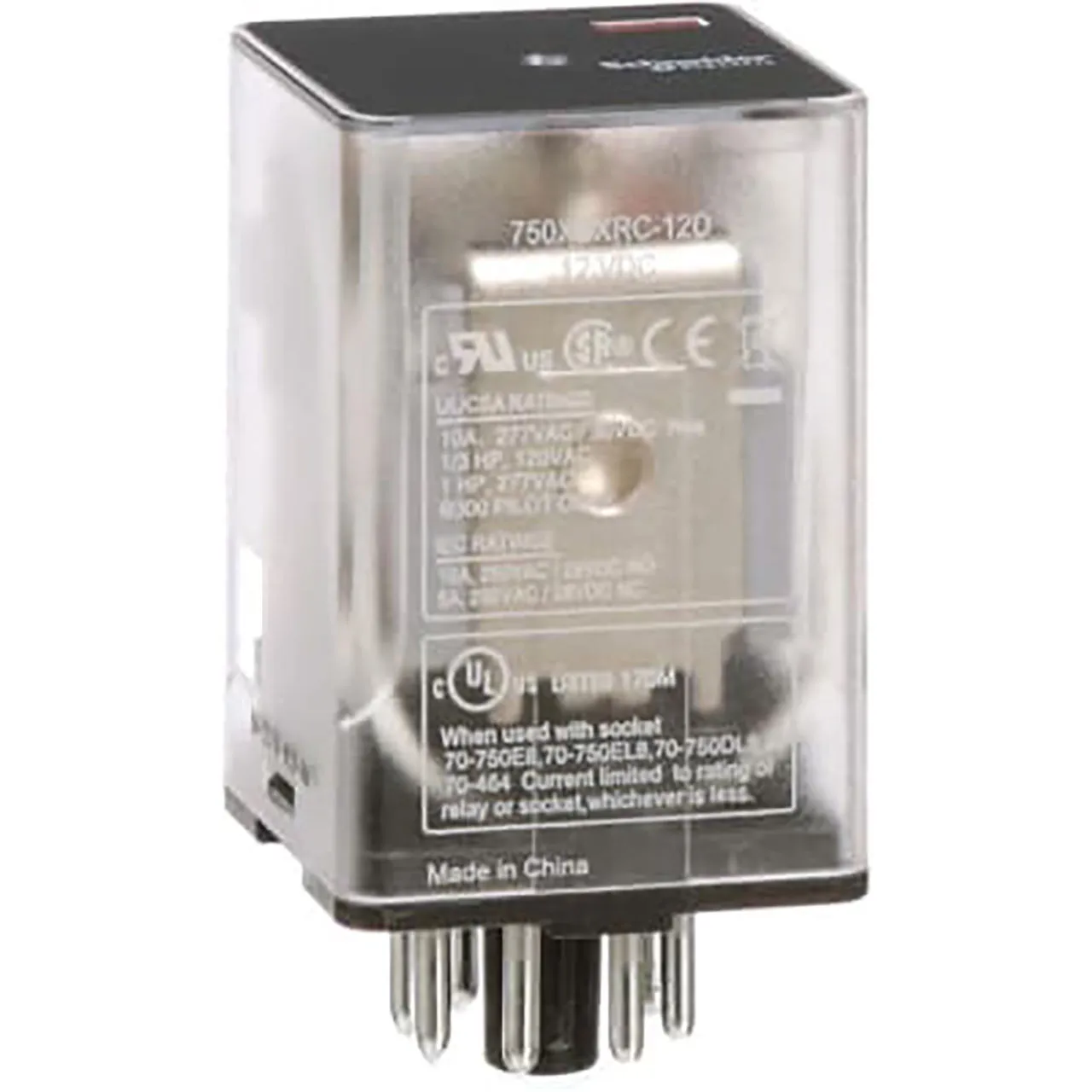 Power Relay, Electromechanical, General Purpose, 12VDC, 10A, DPDT, 8 Pin Octal Plug-in, 750R Series.