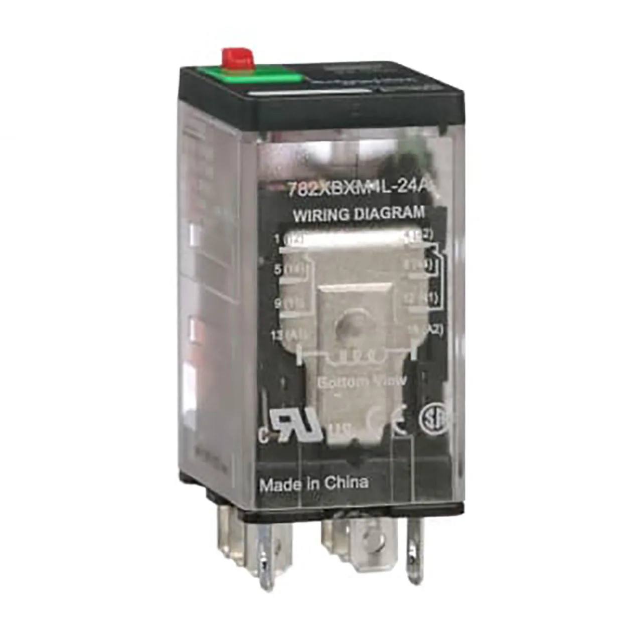 Power Relay, Electromechanical, General Purpose, 24VAC, 15A, DPDT, Faston Terminals/Plug-In Contacts, LED Test Light, 782 Series.