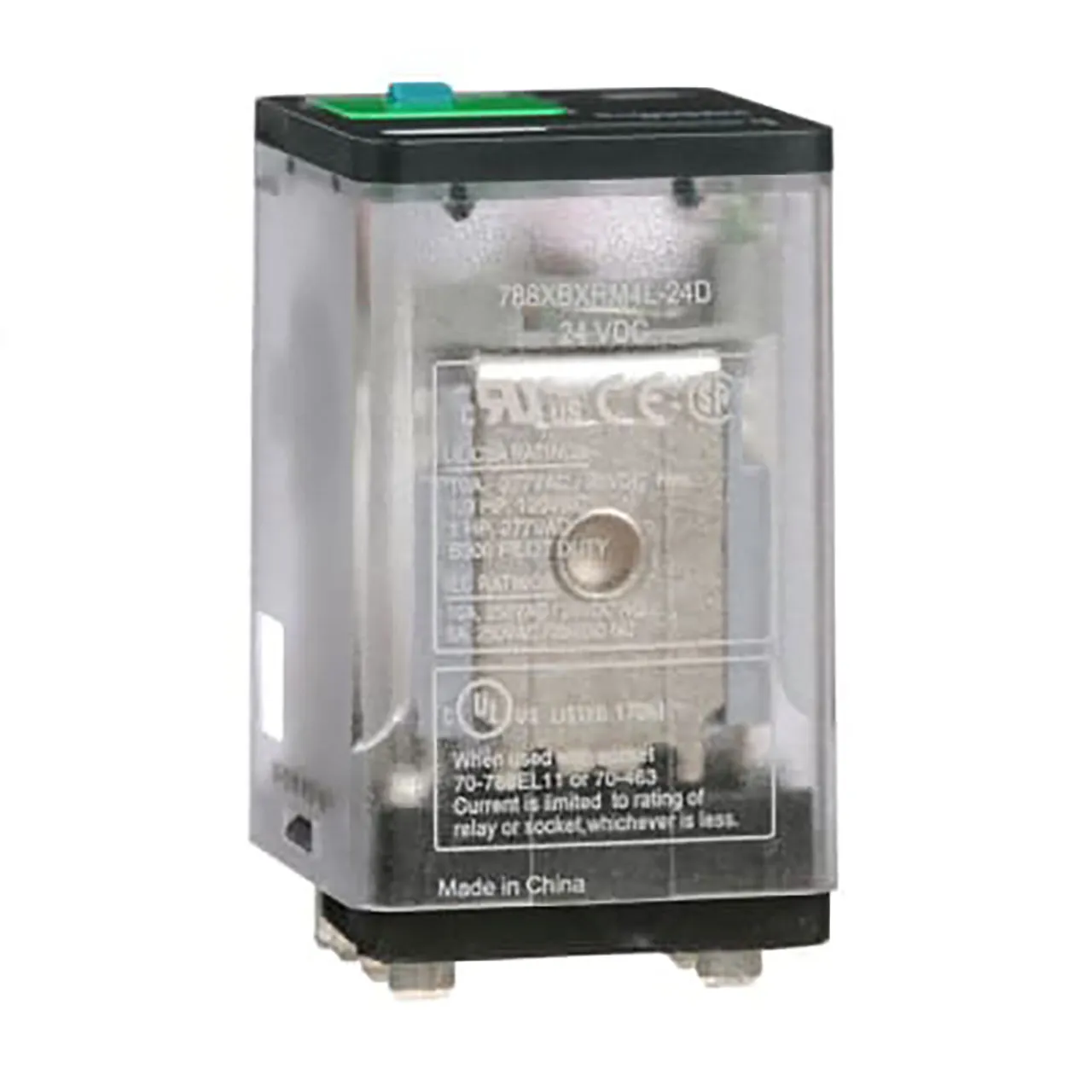 Power Relay, Electromechanical, General Purpose, 24VDC, 10A, DPDT, QC/Plug-In Contacts, 788R Series.