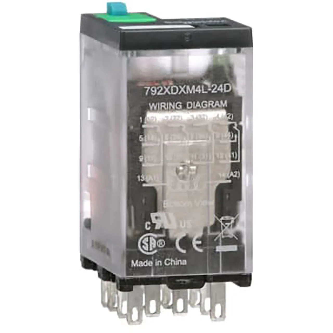 Power Relay Electromechanical General Purpose 24VDC 6A 4PDT QC/Solder/Plug-In Contacts LED Test Light 792 Series