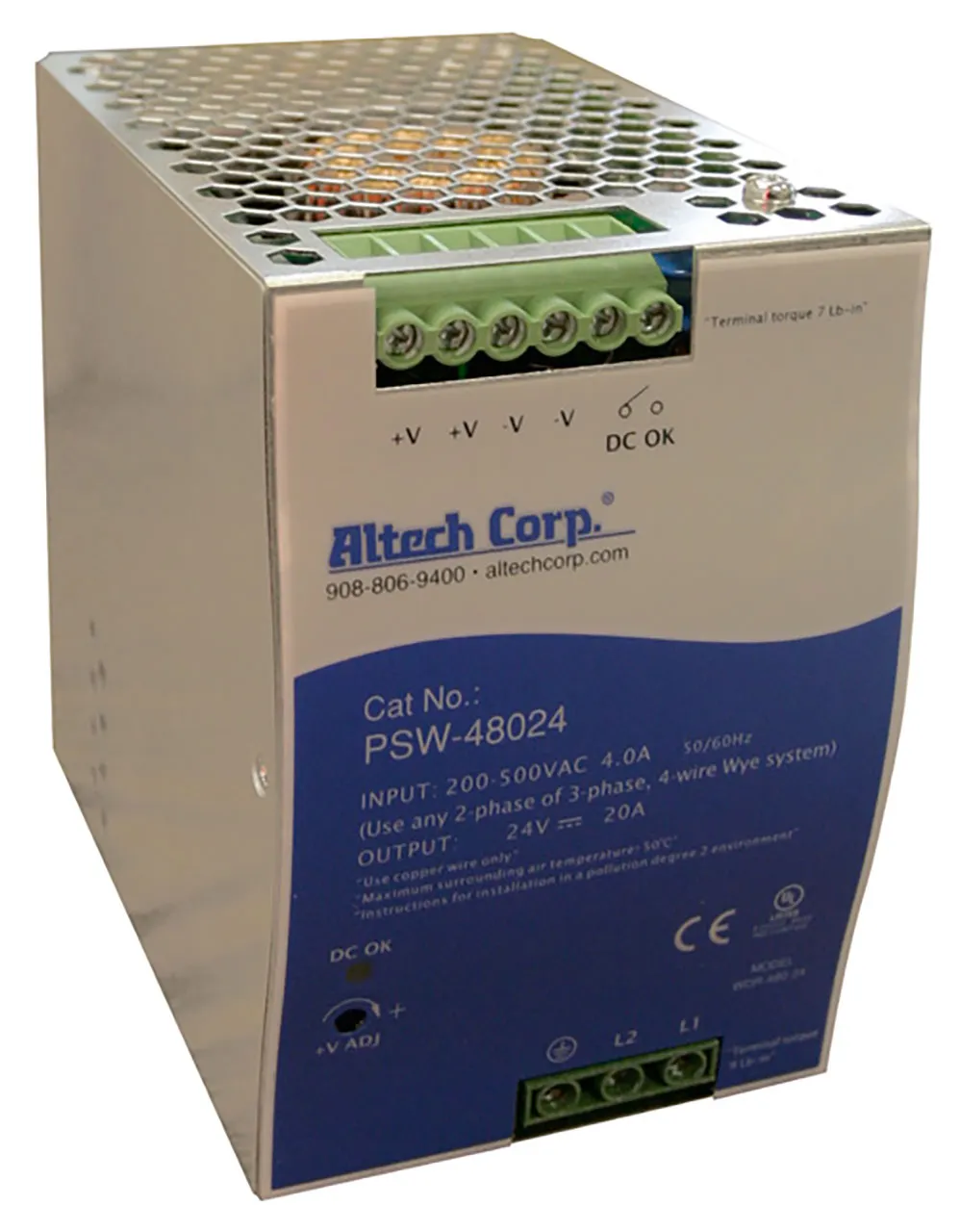 Power Supply DIN Rail 180-550VAC Input 24VDC Output 480W 20A Compact Wide Input Range PFC