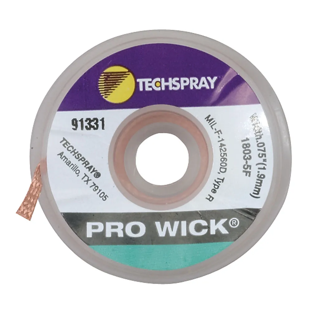 This solder wick has only the finest oxygen-free and oil-free fine gauge wire. The 100% copper wick is coated with flux, which cleans connections thoroughly during desoldering to ensure maximum solderability. This thin coating of flux also provides dependable, long-lasting protection from oxidation.Features