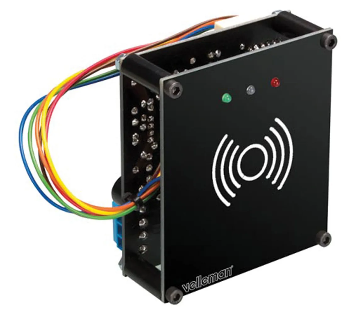 Do you have a gate or similar security measures that you want to allow limited access? Does your office space need additional security features? Install the K8019 Proximity Card Reader to improve your security. While proximity card readers are traditionally used for security keycards, library cards, payment systems, etc. your options are potentially limitless.This reader validates cards through RFID tag numbers. Store up to 250 ID tags through use of the USB interface. When a valid card is presented to the K8019, the relay is energized. The K8019 also has a learning mode, in which you can add new cards and select which card to use as the master card.