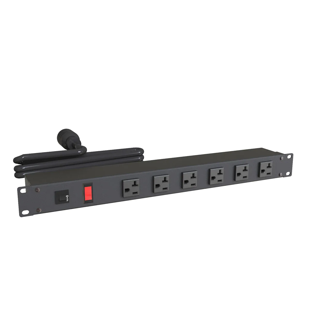 Rack Mount Powerbar 6 Outlet 5-20R 6 Front 0 Rear 20A 120VAC 6 Foot Cord L5-20P Black