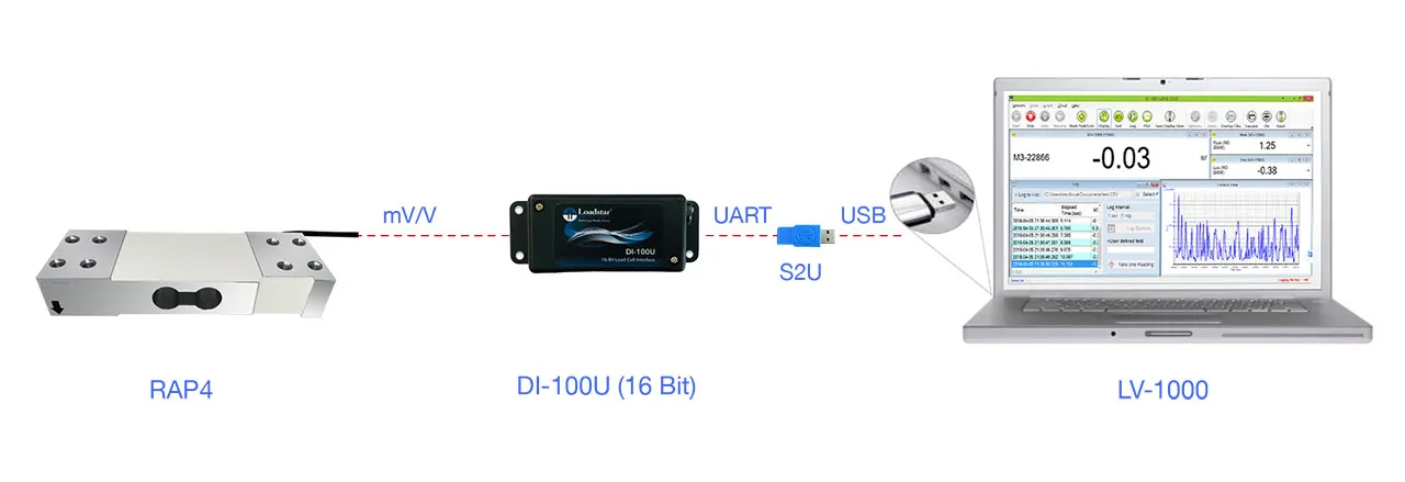 RAP4 Single Point Load Cell PC Kit, 50 KG Capacity, DI-100U USB Interface, LoadVUE Pro Software, Calibrated in Compression