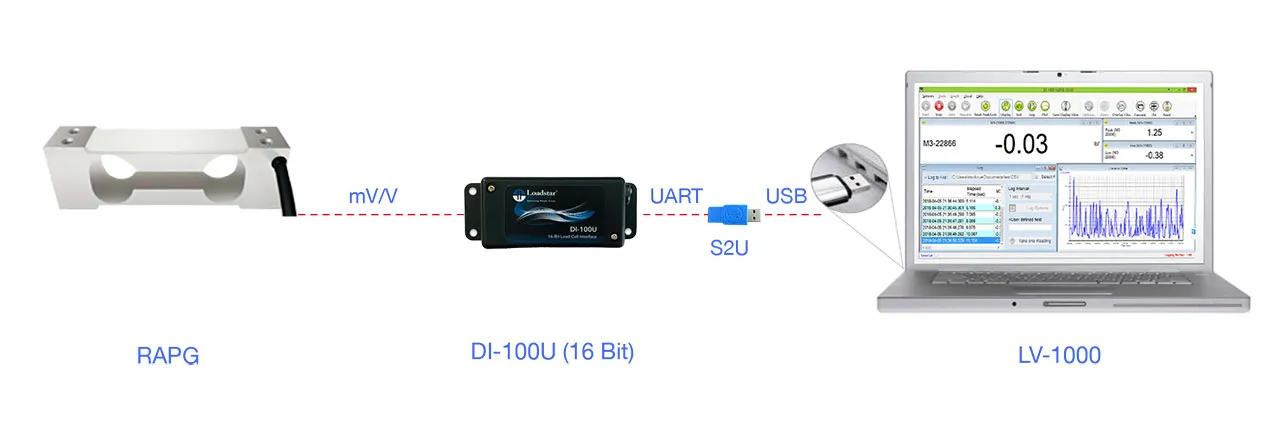 RAPG Single Point Load Cell PC Kit, 3 KG Capacity, DI-100U USB Interface, LoadVUE Pro Software, Calibrated in Compression