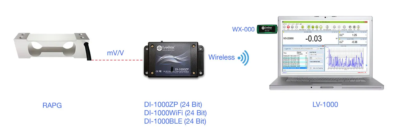 RAPG Single Point Load Cell Wireless PC Kit, 2 KG Capacity, DI-1000ZP Wireless & USB Interface, LoadVUE Pro Software, Calibrated in Compression