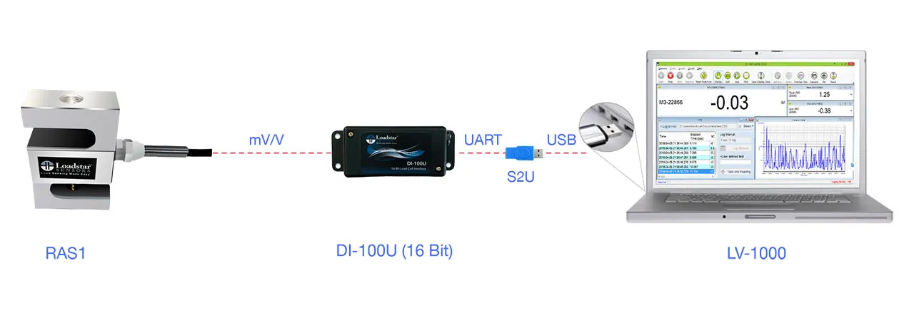 RAS1 S-Beam Load Cell PC Kit, 5000 LB Capacity, DI-1000U USB Interface, LoadVUE Pro Software, Calibrated in Compression