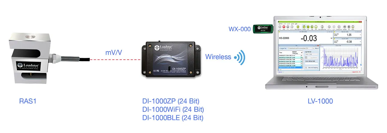 RAS1 S-Beam Load Cell Wireless PC Kit, 250 LB Capacity, DI-1000ZP Wireless & USB Interface, LoadVUE Pro Software, Calibrated in Universal