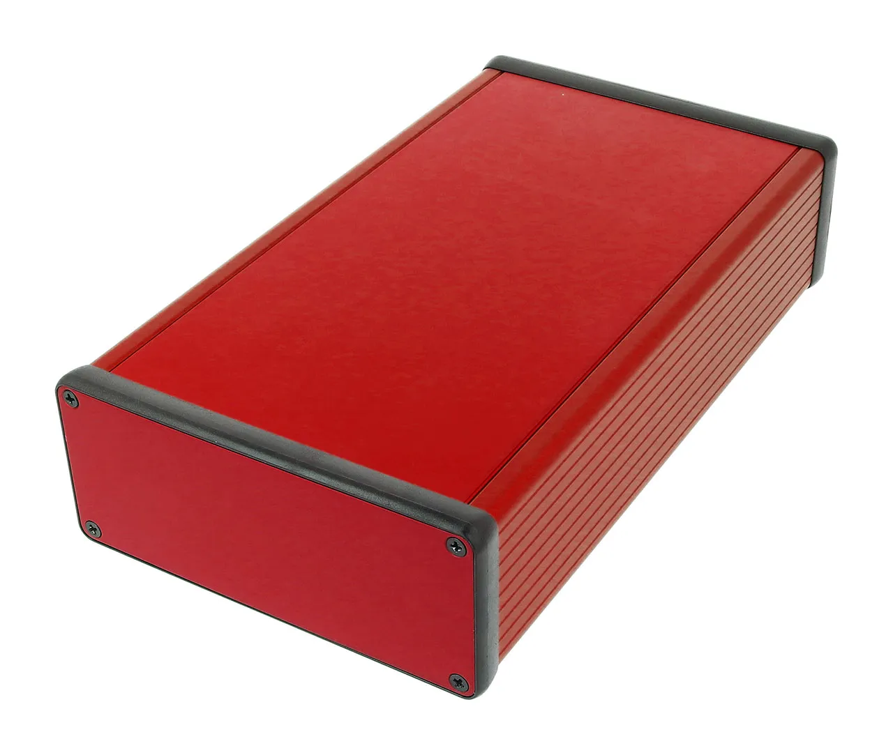 Red Extruded Aluminum Enclosure with Metal End Panels 220x125x52mm