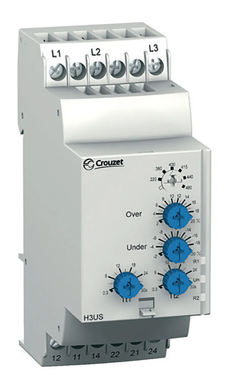 Relay Monitor E-Mech Current Rating 5A AC/DC Control-Voltage 220-480AC Voltage Rating 250AC/DC RoHS DIN Rail Mount H3Us Series