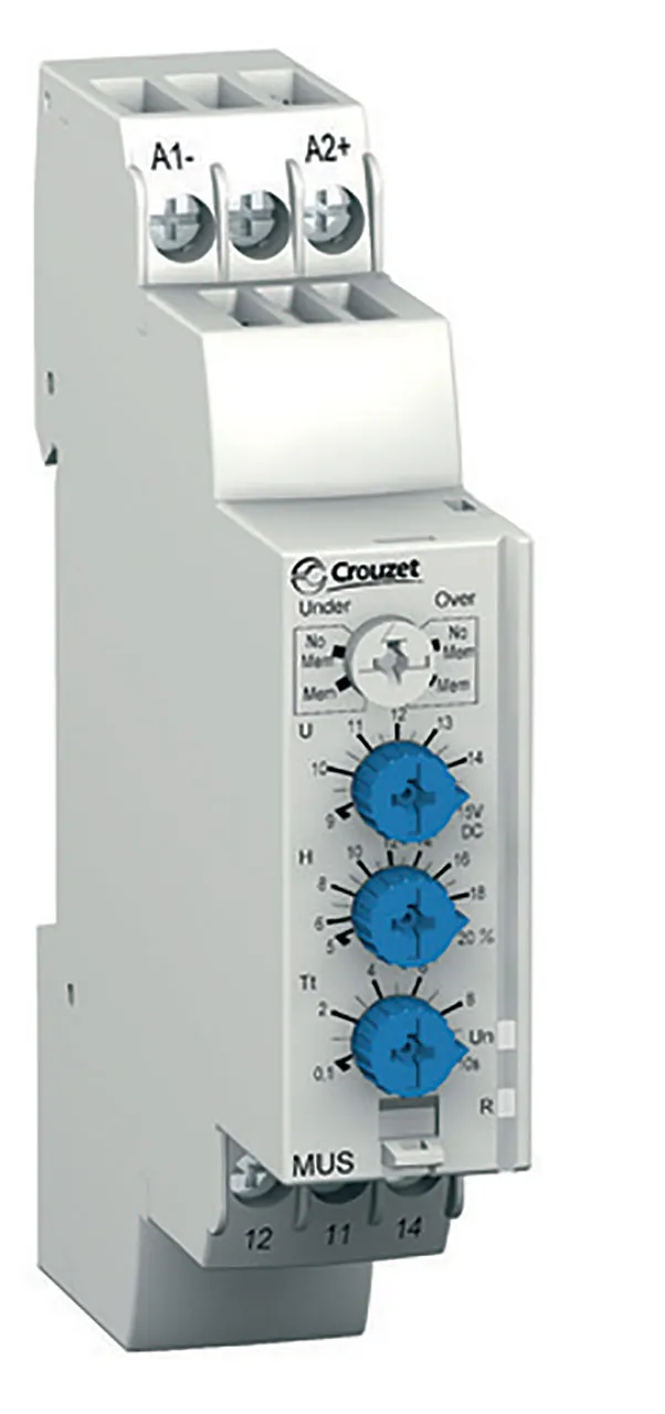 Relay Monitor E-Mech Current Rating 5A Control-Voltage 12DC Voltage Rating 250AC/DC DIN Rail Mount MUS-Series.