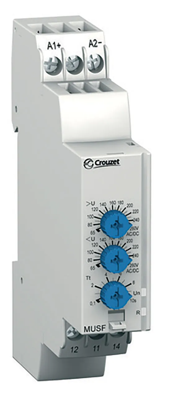 Relay Monitor E-Mech Under/Overvoltage Control in Window Mode 5A 110-240AC/DC DIN Rail Mount MUS-Series.