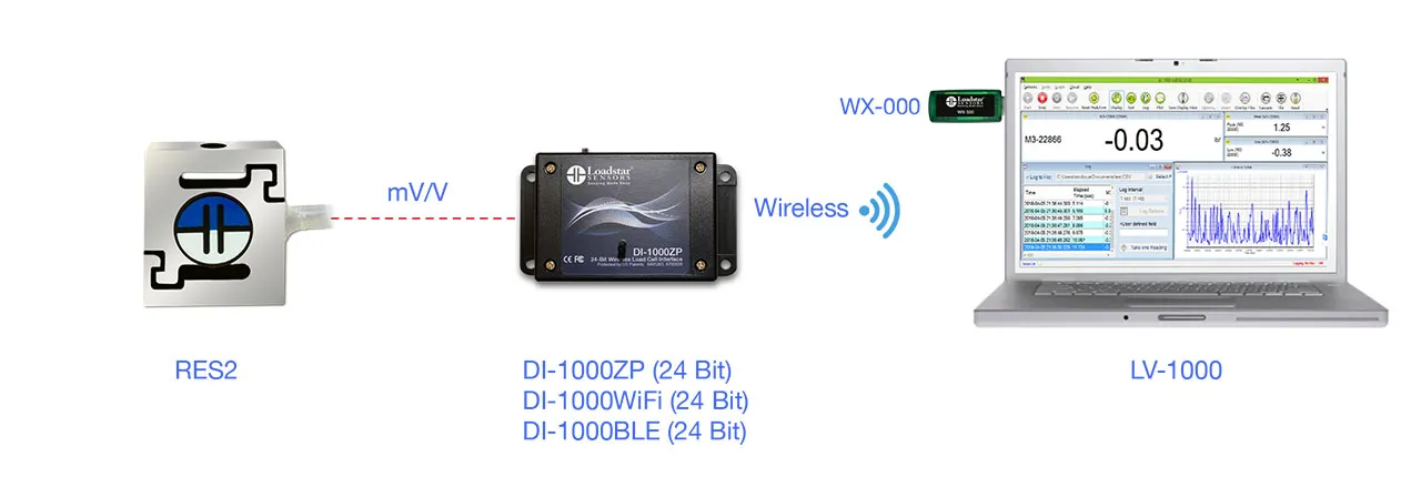 RES2 S-Beam Jr. Miniature Load Cell Wireless PC Kit, 1 KG Capacity, DI-1000ZP Wireless & USB Interface, LoadVUE Pro Software, Calibrated in Tension